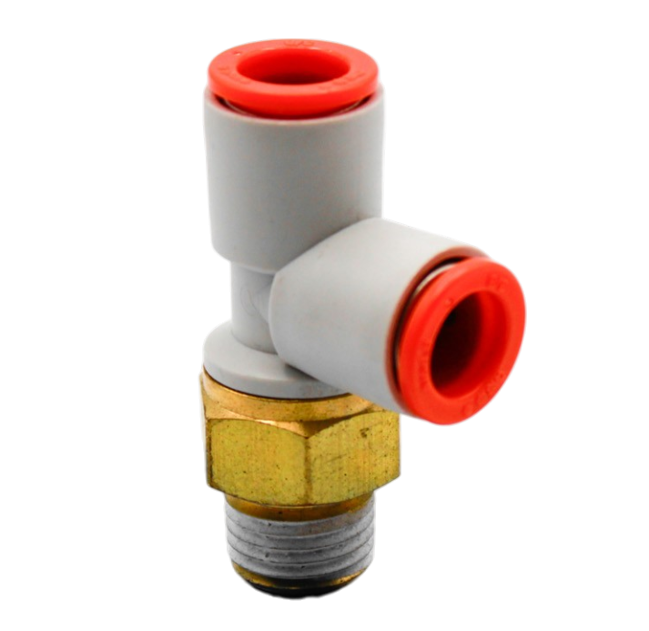 The Male Run Tee is a compact and versatile push-to-connect fitting designed to branch off a main air line while connecting to a threaded port. Featuring two 1/4″ OD push-to-connect ports and one 3/8″ NPT male threaded connection, this fitting is ideal for integrating tubing into valves, manifolds, or other threaded components.