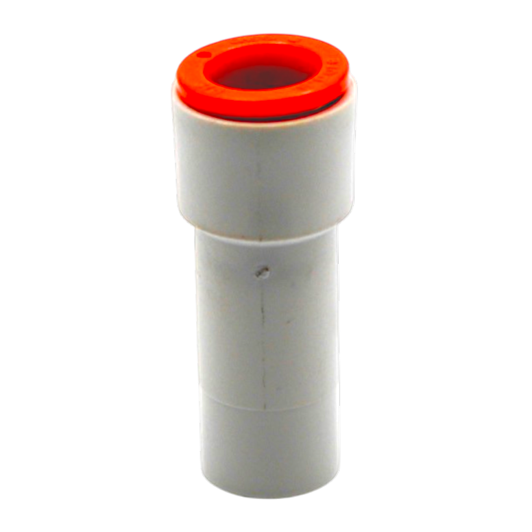 The 1/2″ to 3/8″ Reducer is a compact push-to-connect fitting designed to seamlessly connect different tubing sizes within your air or fluid system. This fitting allows you to transition from 1/2″ OD tubing down to 3/8″ OD tubing while maintaining a secure, leak-resistant connection.